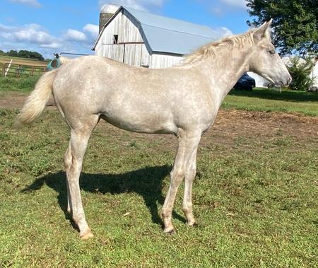 This filly will have a pretty little head and large bone to support active riders for any discipline! Courageous and Confident. A very polite, personal and curious disposition. You'll never meet a more naturally friendly, personal well-gaited gal.