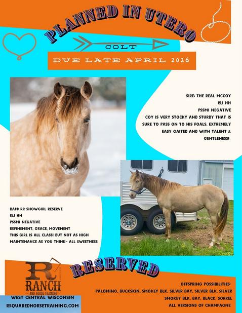 R2 Ninth Reserve 2025 breeding successes! Three client owned mares were bred and confirmed pregnant! Muddycreeks Foxy Roxy's foal may be available 3rd party